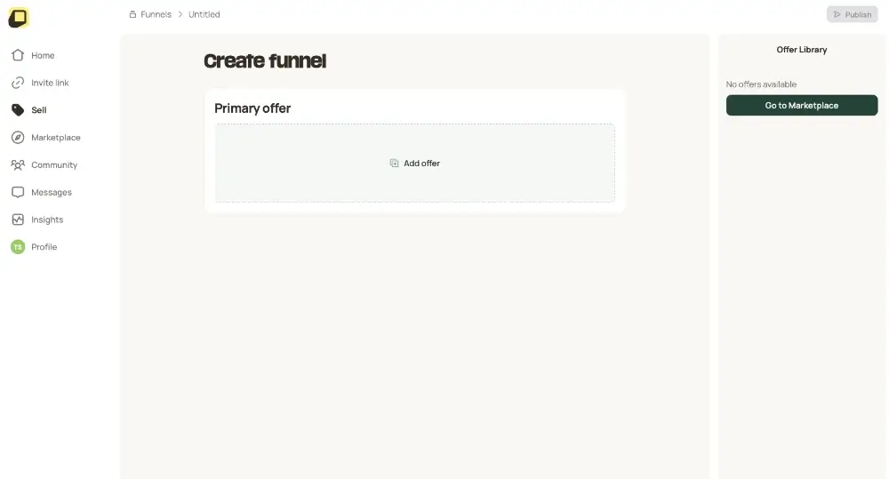 Mit OfferLab verkauft er nicht nur sein Angebot, sondern fügt Jasmins Kurs, Rileys Matte und Lowells Blöcke zu einem gemeinsamen Funnel hinzu.